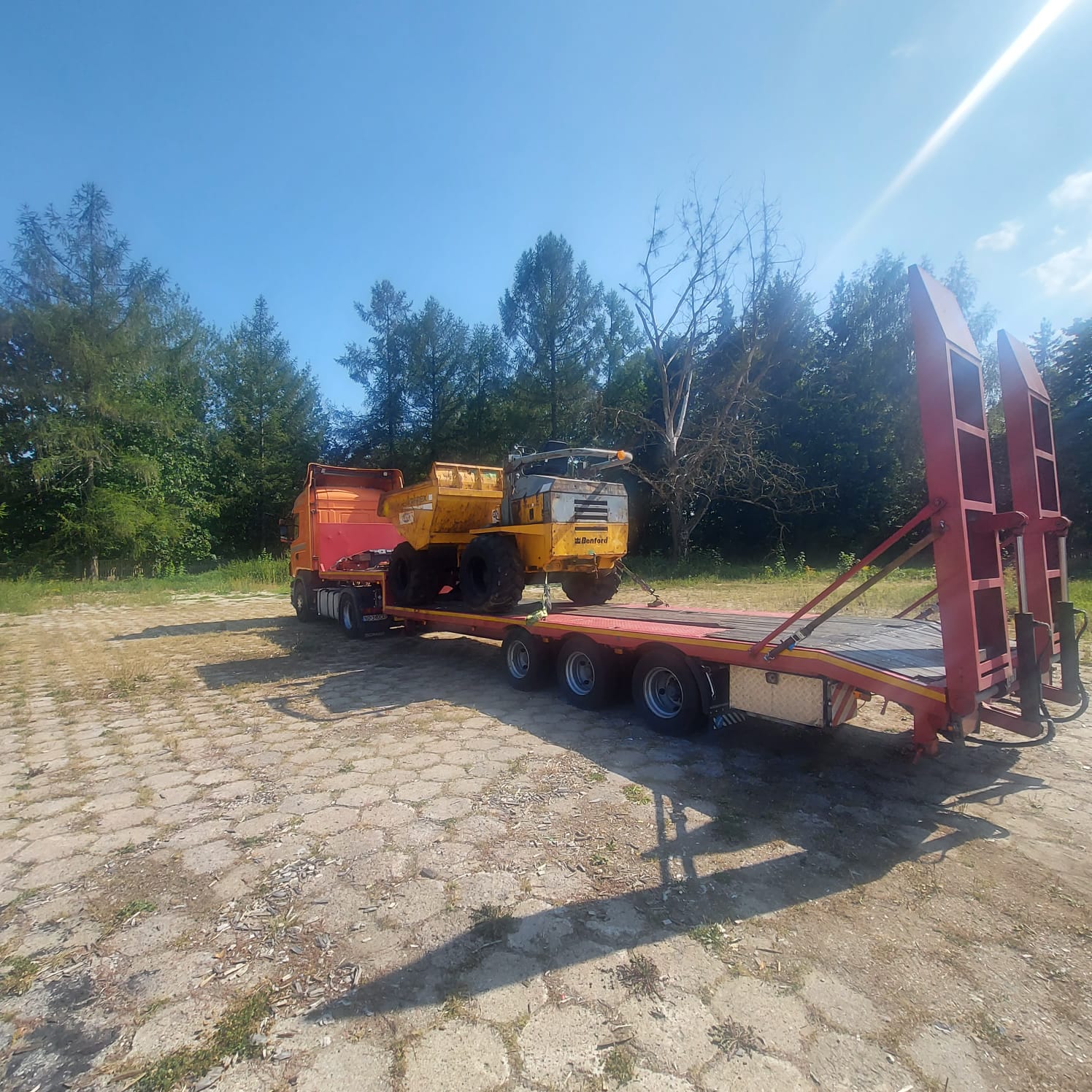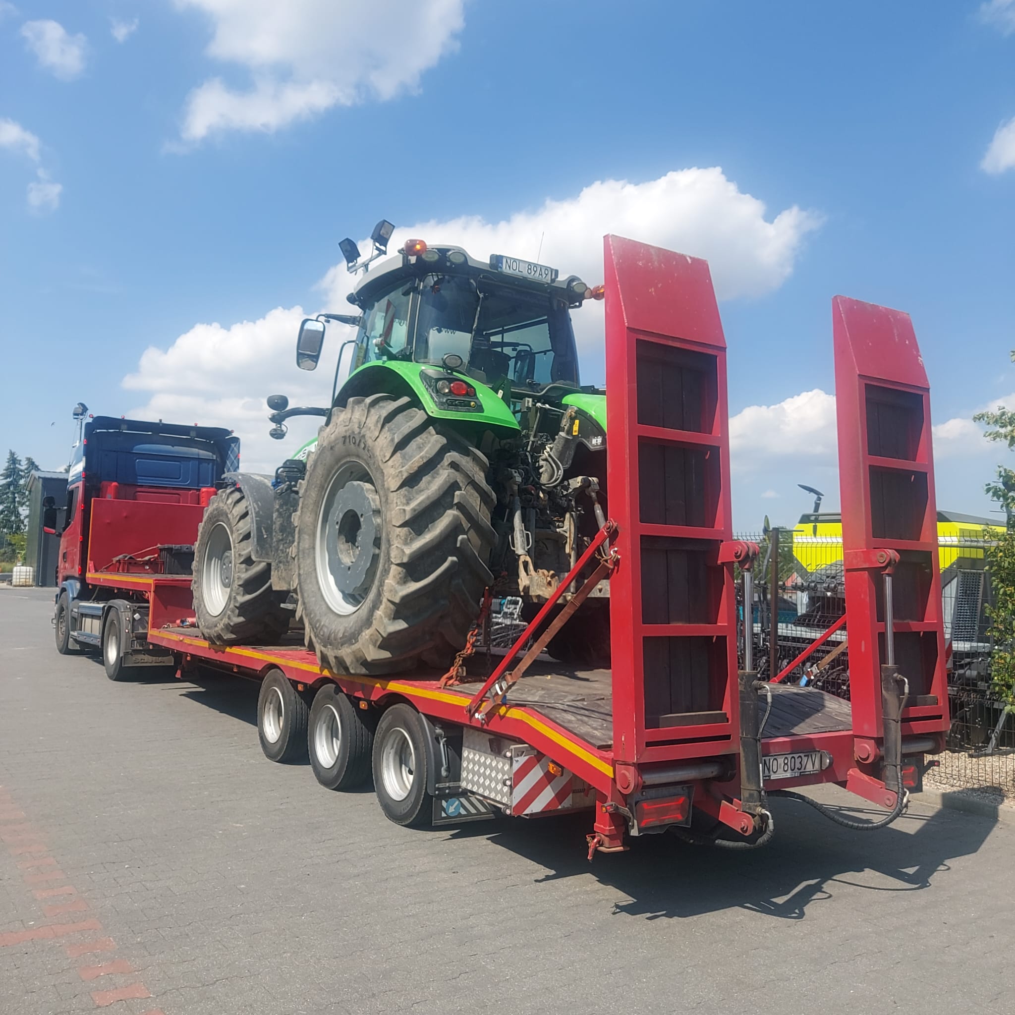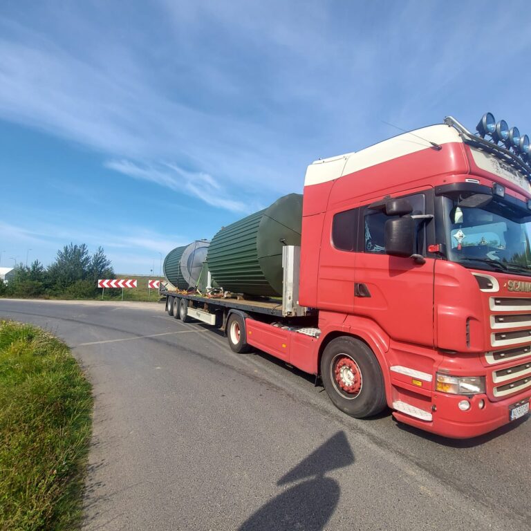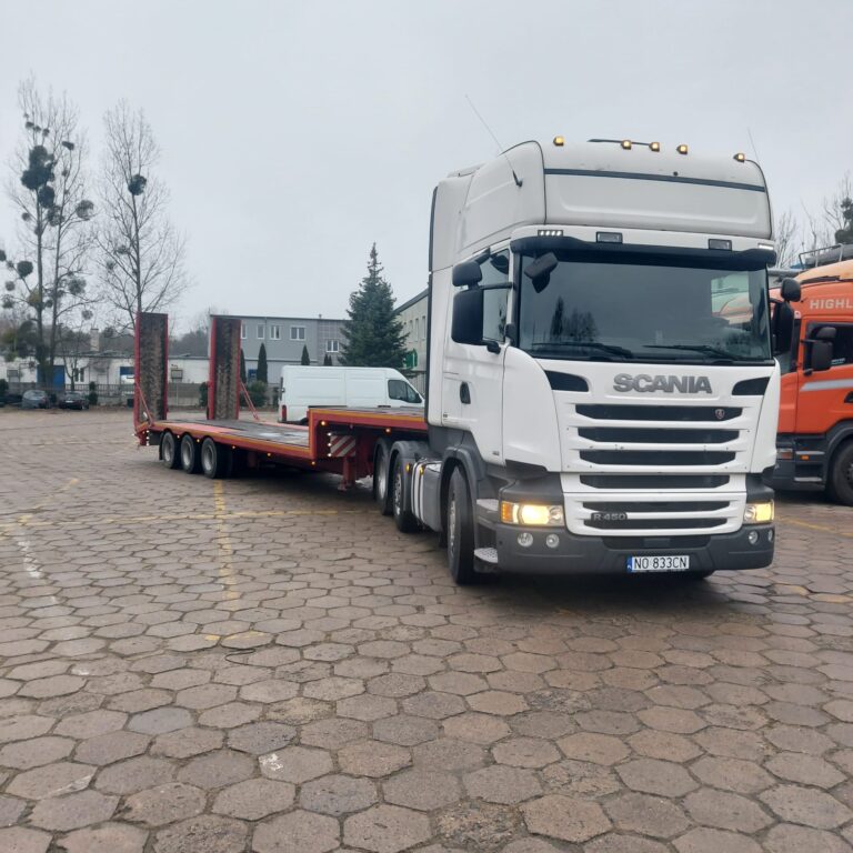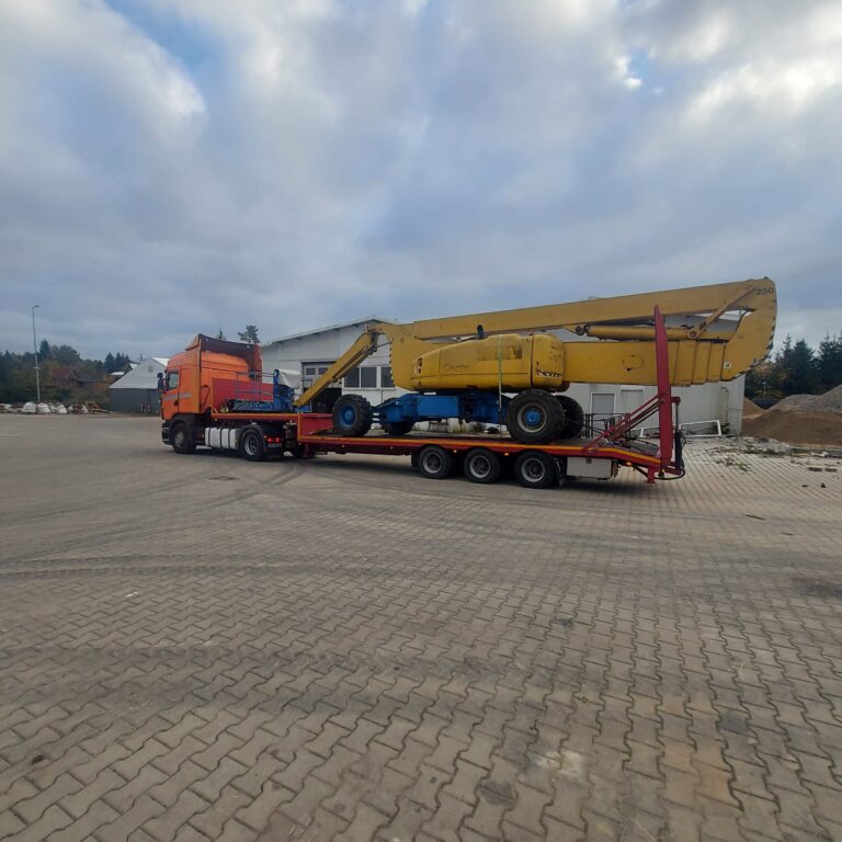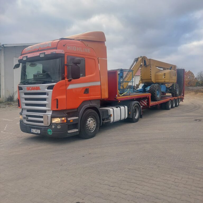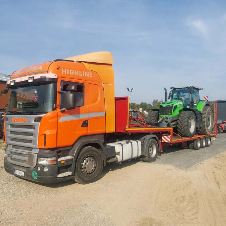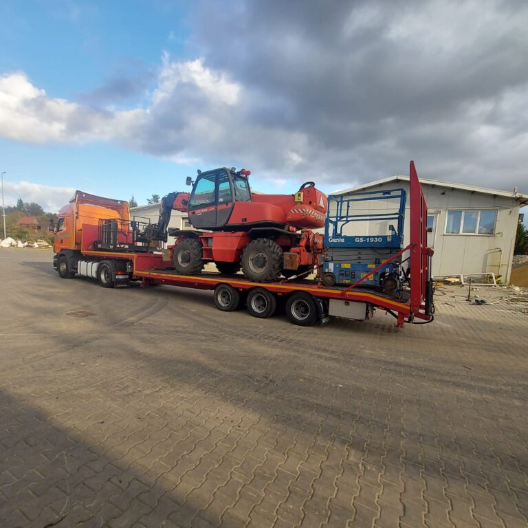 Zapewniamy bezpieczne przewozy ładunków wielkogabarytowych (koparki kołowe, koparki gąsienicowe, ciągniki, maszyny samojezdne, domki holenderskie, ściany hal, szamba, zbiorniki).